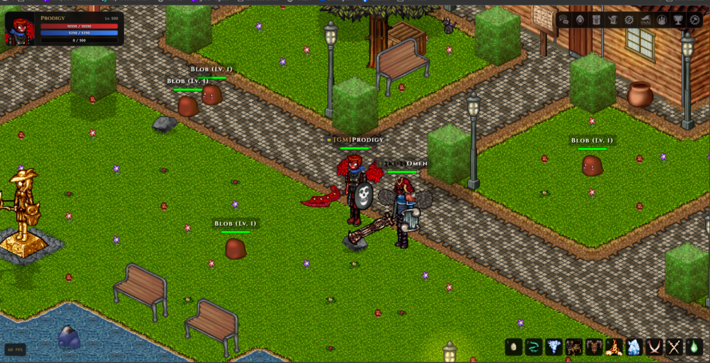 Noxious se revendique inspiré par Dark Ages, Habbo, Ultima Online et RuneScape, soit un héritage clairement orienté vers les MMO communautaires à l’esthétique pixel. L’aspect vieille école est assumé, tant graphiquement que dans la philosophie du jeu : pas de narration imposée, pas d’instance solo, pas de main mise sur le ressenti du joueur.